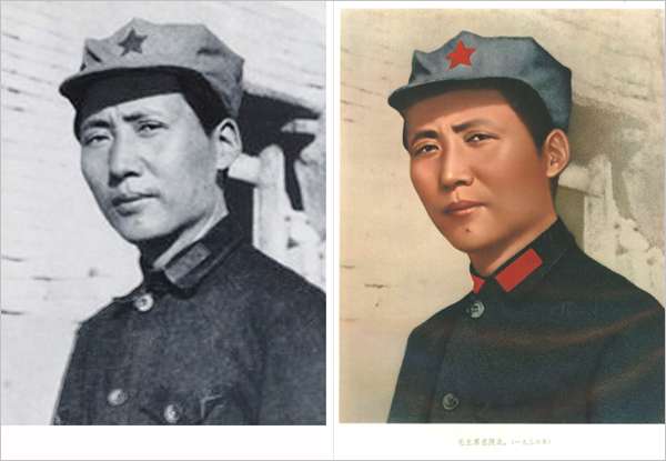 毛主席照片高清修復版對比
