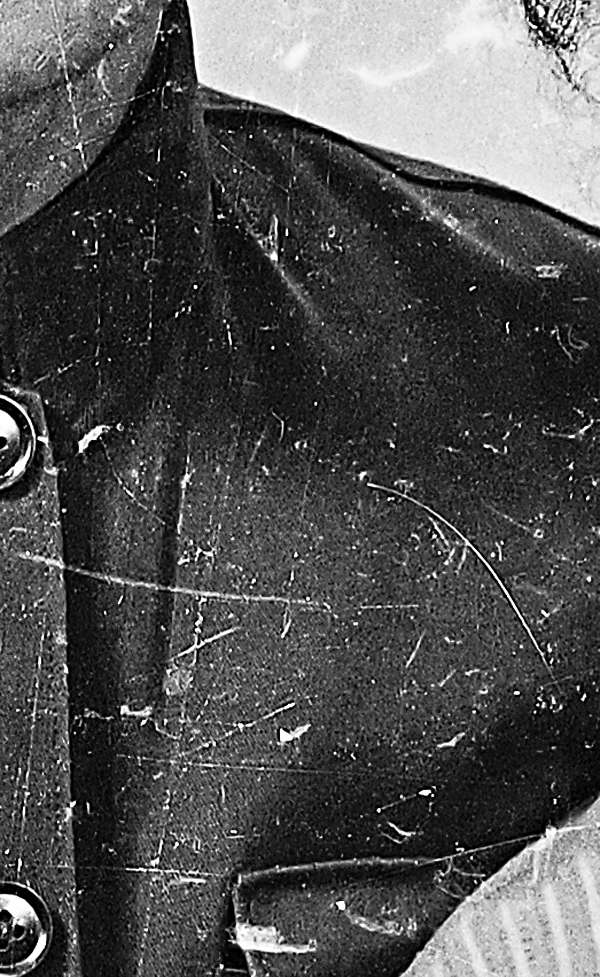 調整裁剪完成,得到正常的電子版照片。初步看,這種照片沒有明顯的破損,肉眼可見幾處底片脫膜白斑。從顧客的角度看,這種照片修復很簡單,思路也簡單,手工去掉幾處明顯的斑點,執行強力降噪就可以得到干凈完整的照片,這個想法也沒錯,但得看用途和輸出要求,下面會分解。那從專業修復師角度又該以什么樣的方式評估修復呢,看下面: