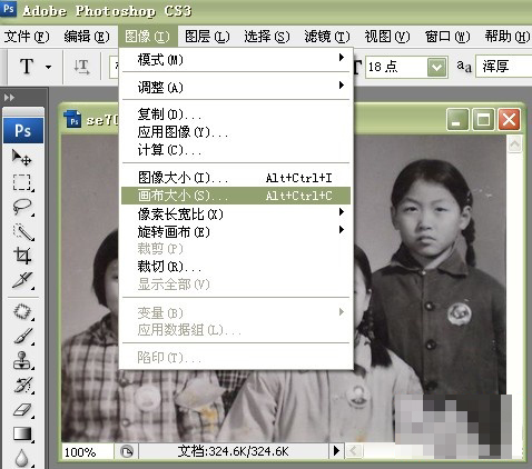 2、點擊【圖像】—【畫布大小】,調整畫布框內的寬度和高度,這時將【寬度】調的高一點,具體要求能夠寫所需要的字就可以了;